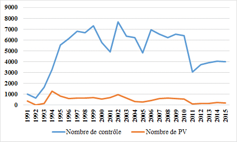 L’évolution du nombre des opérations de contrôle et des PV sont présentés par le graphique suivant :
